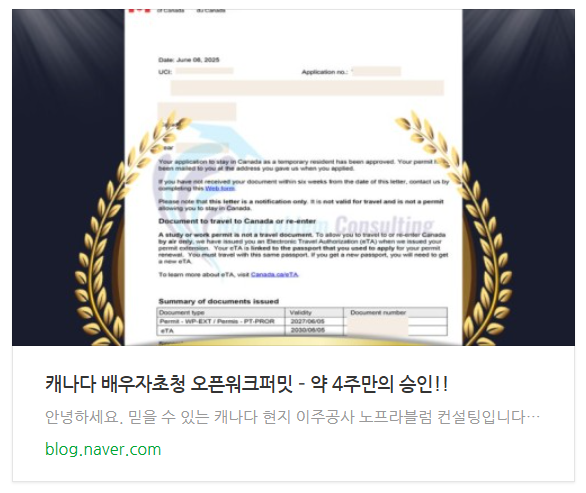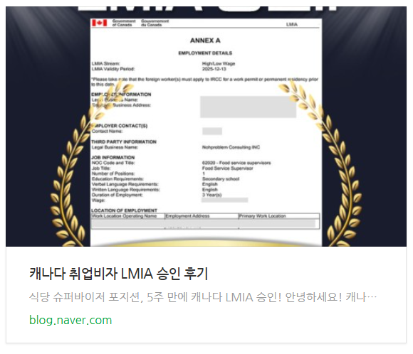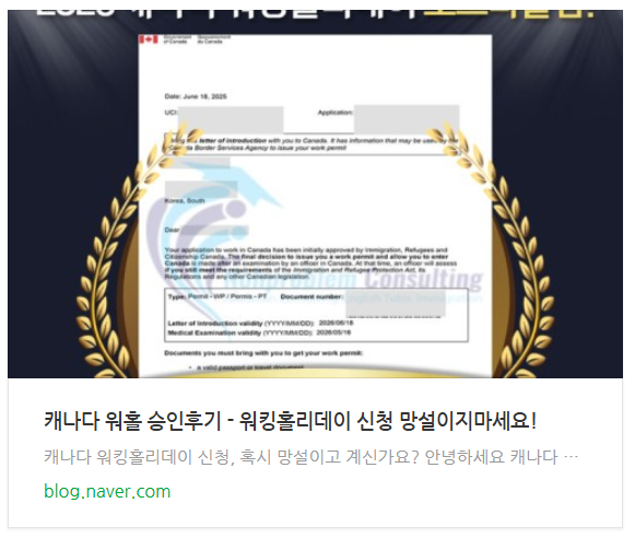 👇 이민을 위한 첫걸음 캐나다 취업비자 승인 후기 보러가기 👇