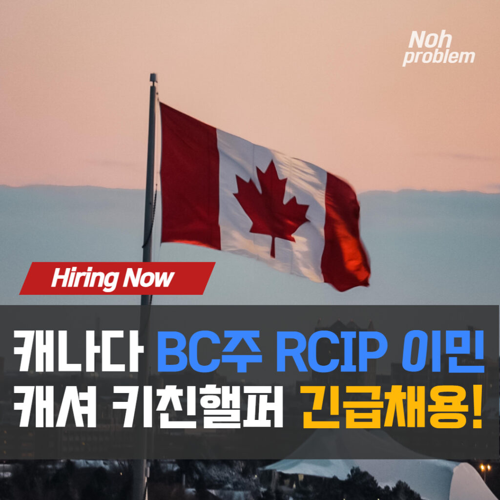 캐나다 BC주 RCIP 이민 캐셔, 키친핼퍼 이민 노프라블럼과 함께하세요!