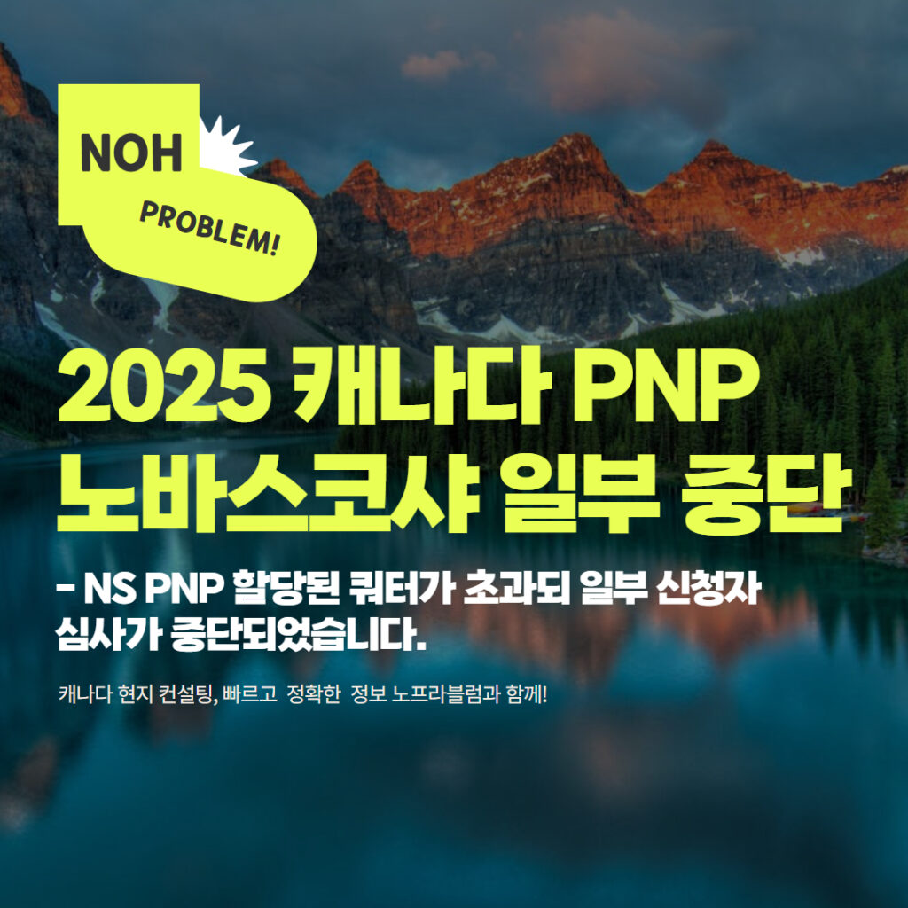 캐나다 영주권 노바스코샤 주 정부 이민 신청자 일부 접수 중단되었습니다. 안녕하세요, 캐나다 현지 이주공사 믿을 수 있는 노프라블럼 컨설팅입니다. 최근 노바스코샤(Nova Scotia) 주정부에서 2025년도 이민 정책과 관련하여 중요한 공지를 발표했습니다. 올해 주정부이민(PNP)을 고려하고 계신 분들은 꼭 확인하셔야 할 내용입니다. 여러분의 캐나다 영주권 전략에 필수적인 정보가 담겨 있습니다. 2025년 캐나다 영주권…