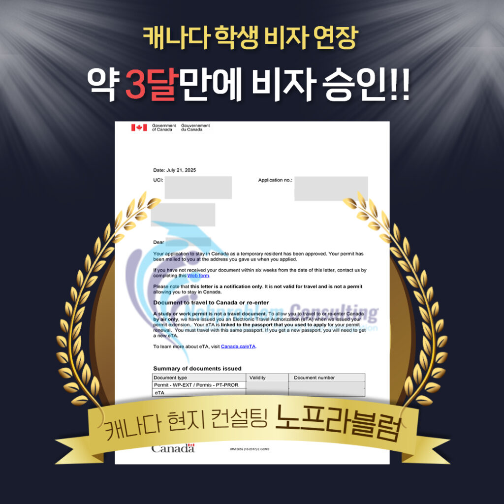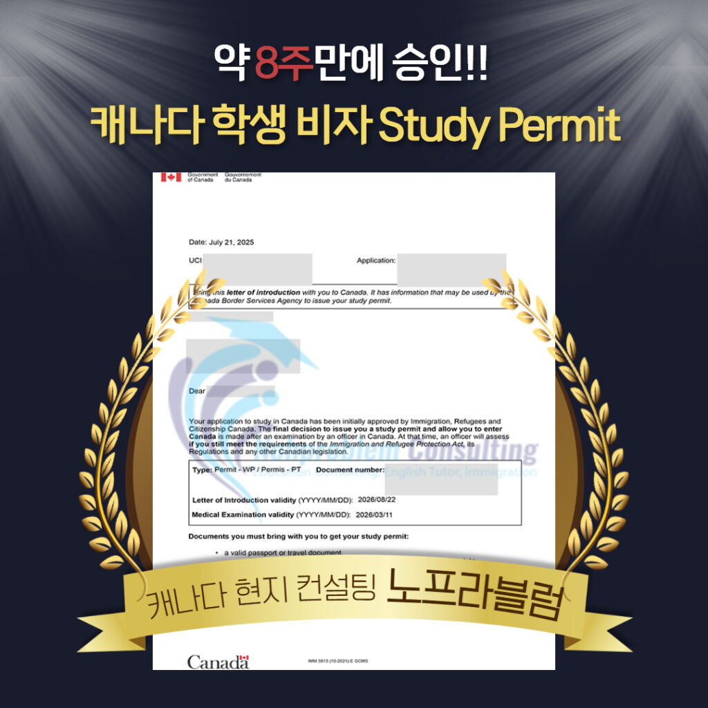 캐나다 스터디퍼밋을 받는데 어려움이 많다는 소식에 많은 분이 염려하고 계실 텐데요. 이러한 상황 속에서도 2025년 7월, 저희 노프라블럼 컨설팅의 고객님이 캐나다 스터디퍼밋을 성공적으로 승인 받으 실 수 있으셨습니다. 이번 성공 사례를 통해 더욱 강화된 심사 기준 속에서 캐나다 학생비자 스터디퍼밋을 어떻게 효과적으로 준비해야 할지 자세히 알려드릴게요. 캐나다 학생비자 스터디퍼밋…